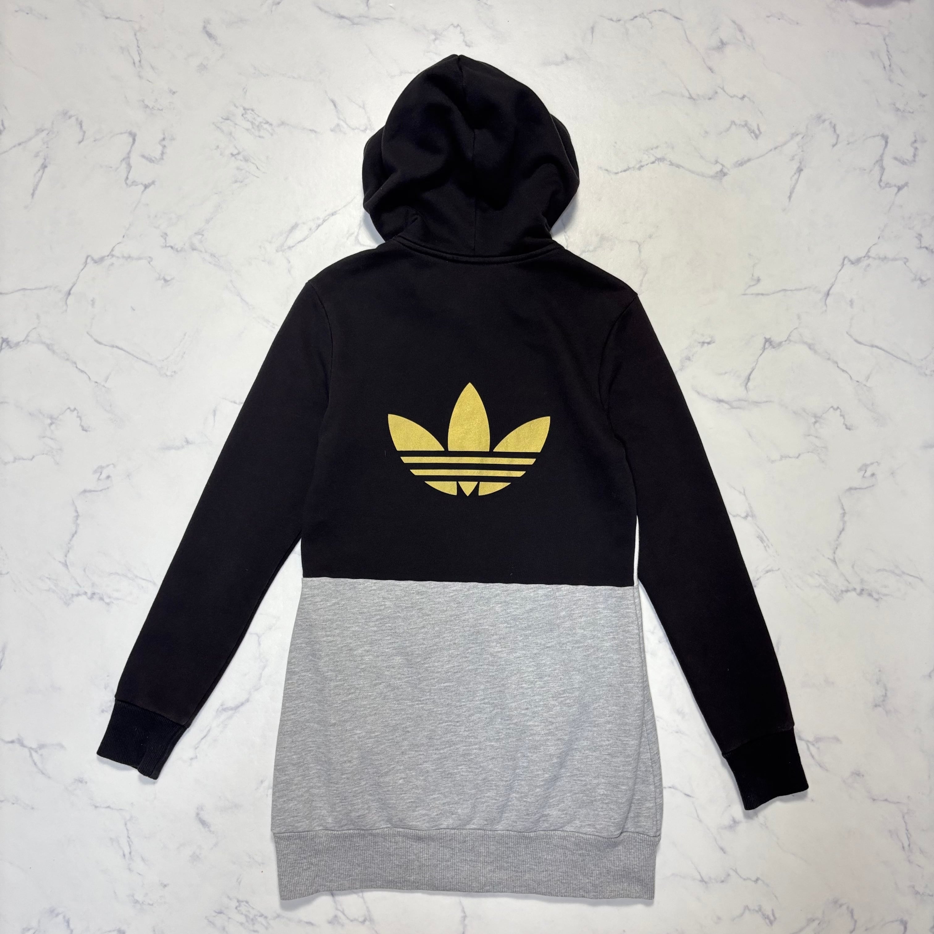 背面にはゴールドの大きなトレフォイルロゴが施され、ストリート感を演出してくれる一枚です。