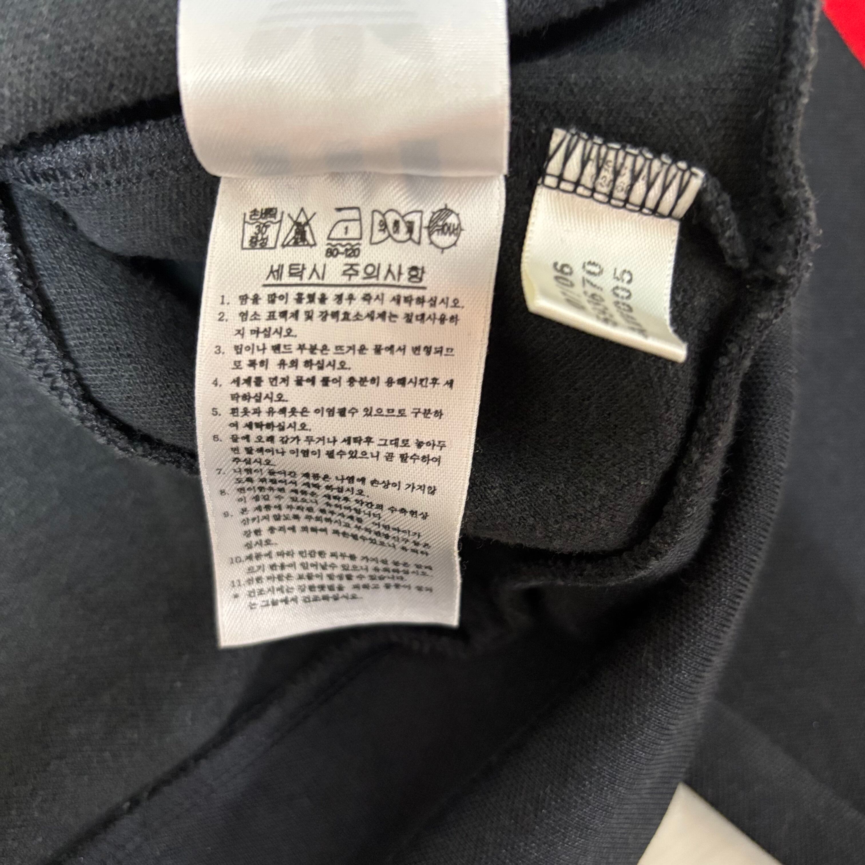 トレフォイルロゴとスリーストライプの組み合わせが印象的で、韓国古着らしい雰囲気のある一着。
