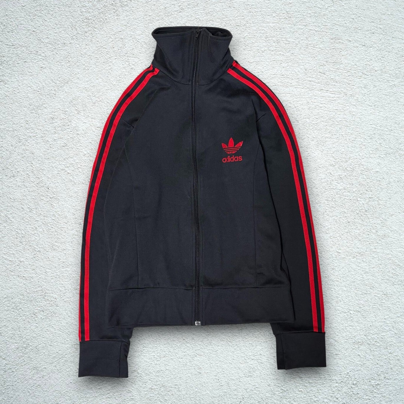 ブラックに鮮やかなレッドラインが映える、adidas Europa TrackTopのクラシックモデルです。