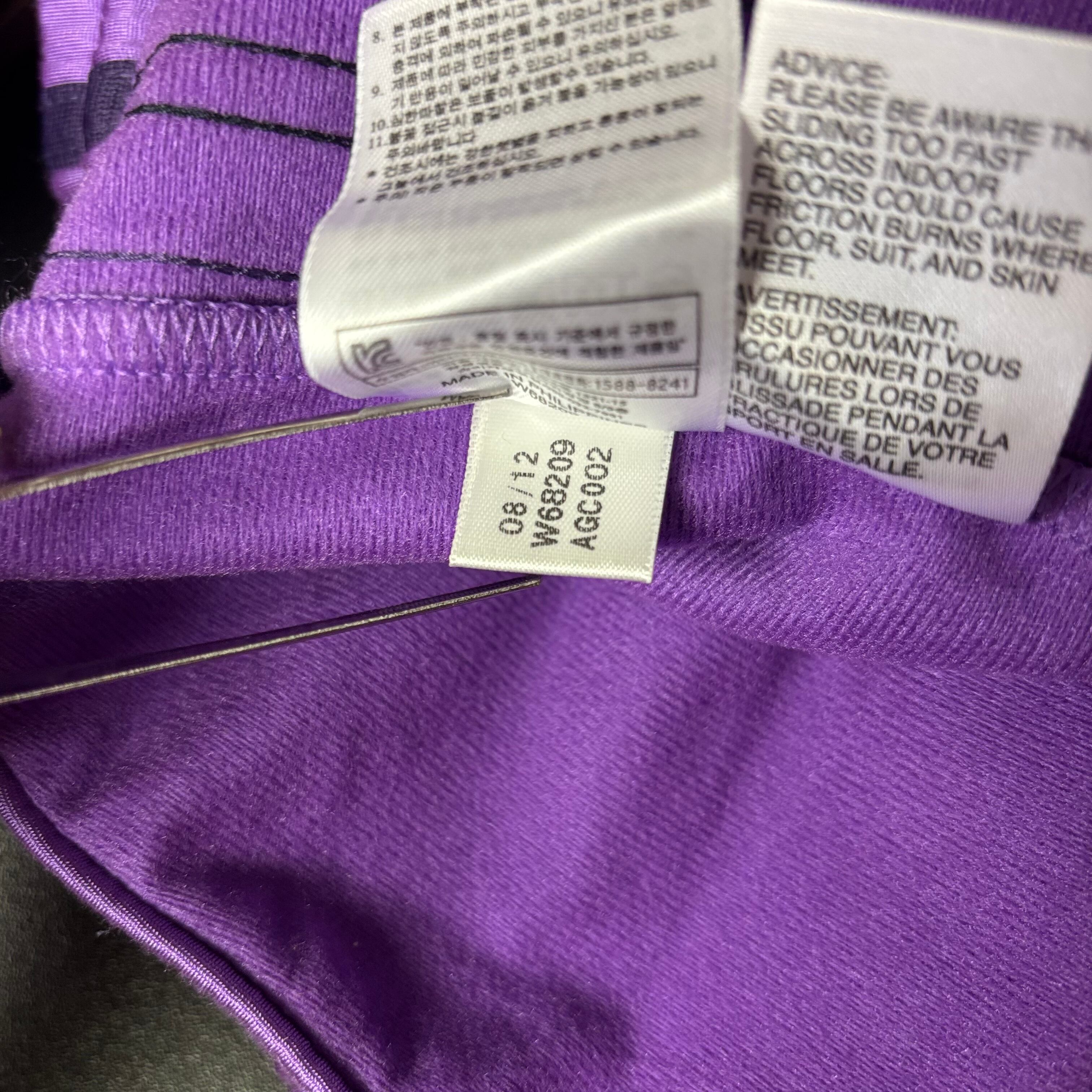 発色の良いパープルカラーにブラックラインを組み合わせた存在感のあるデザインで、ストリートスタイルからスポーティなコーディネートまで幅広く活躍します。
