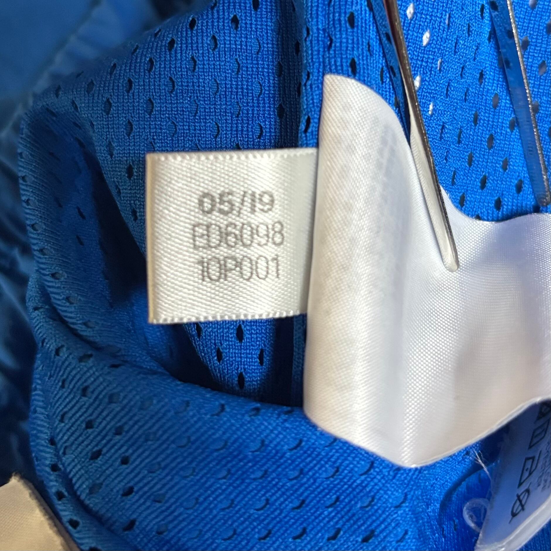 鮮やかなブルーカラーにホワイトの3ストライプとトレフォイルロゴが映える、存在感のあるデザイン。