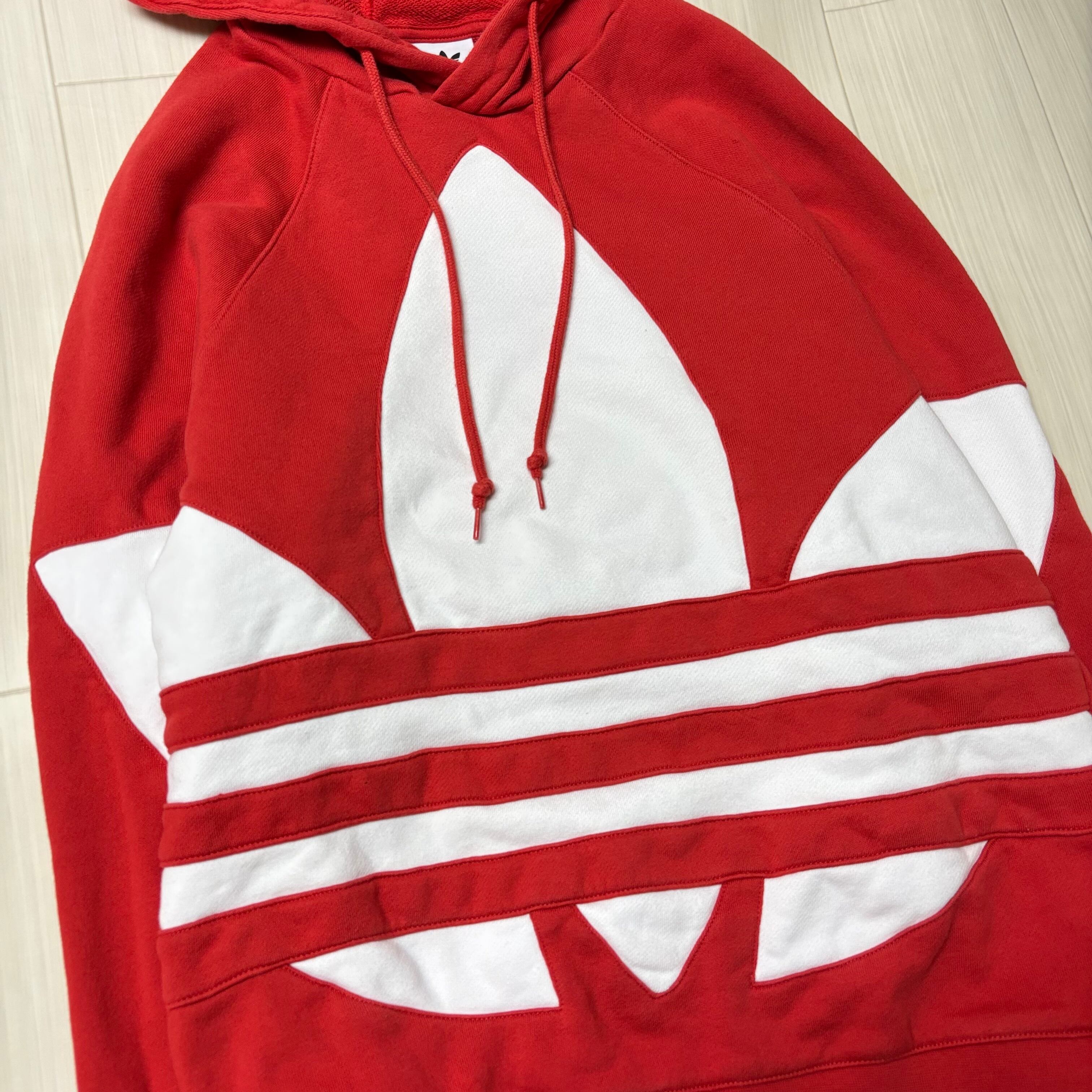 【adidas】アディダス トレフォイル ビッグロゴ プルオーバーパーカー レッド L