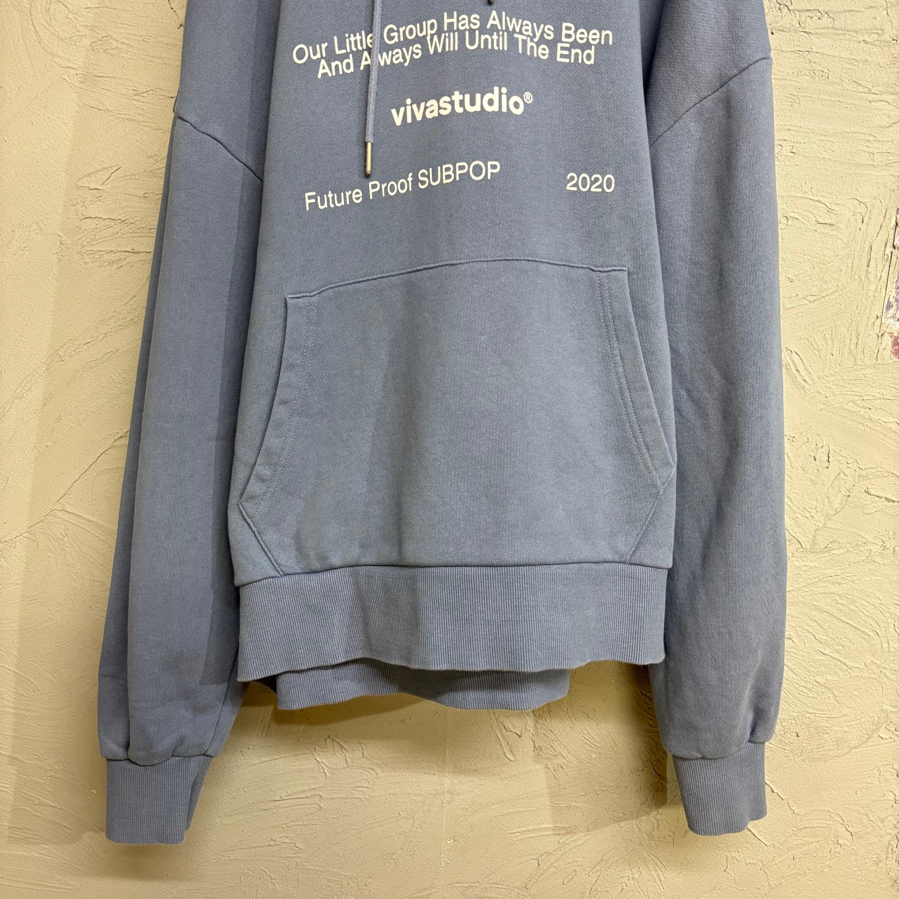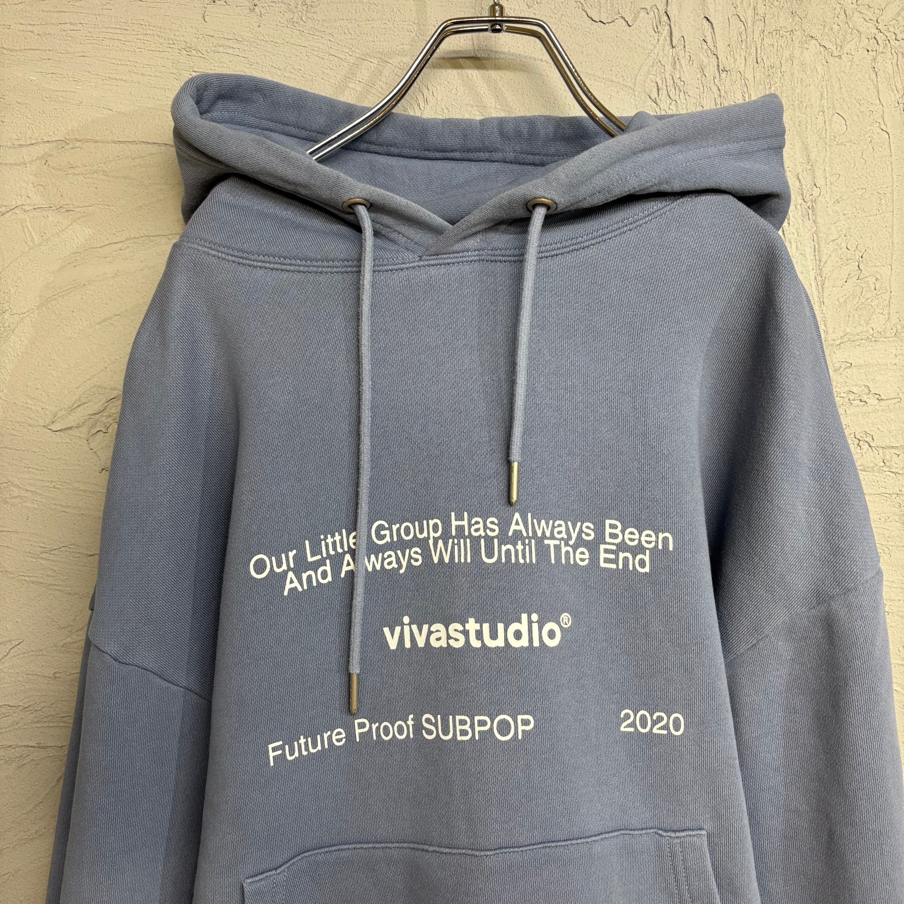 【vivastudio】ビバスタジオ ロゴプリント プルオーバーパーカー(M)ブルーグレー 古着
