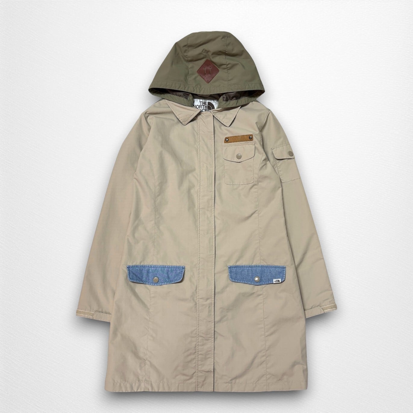 ベージュを基調に、ポケットの切り替えやフード部分の配色が程よいアクセントになっています。