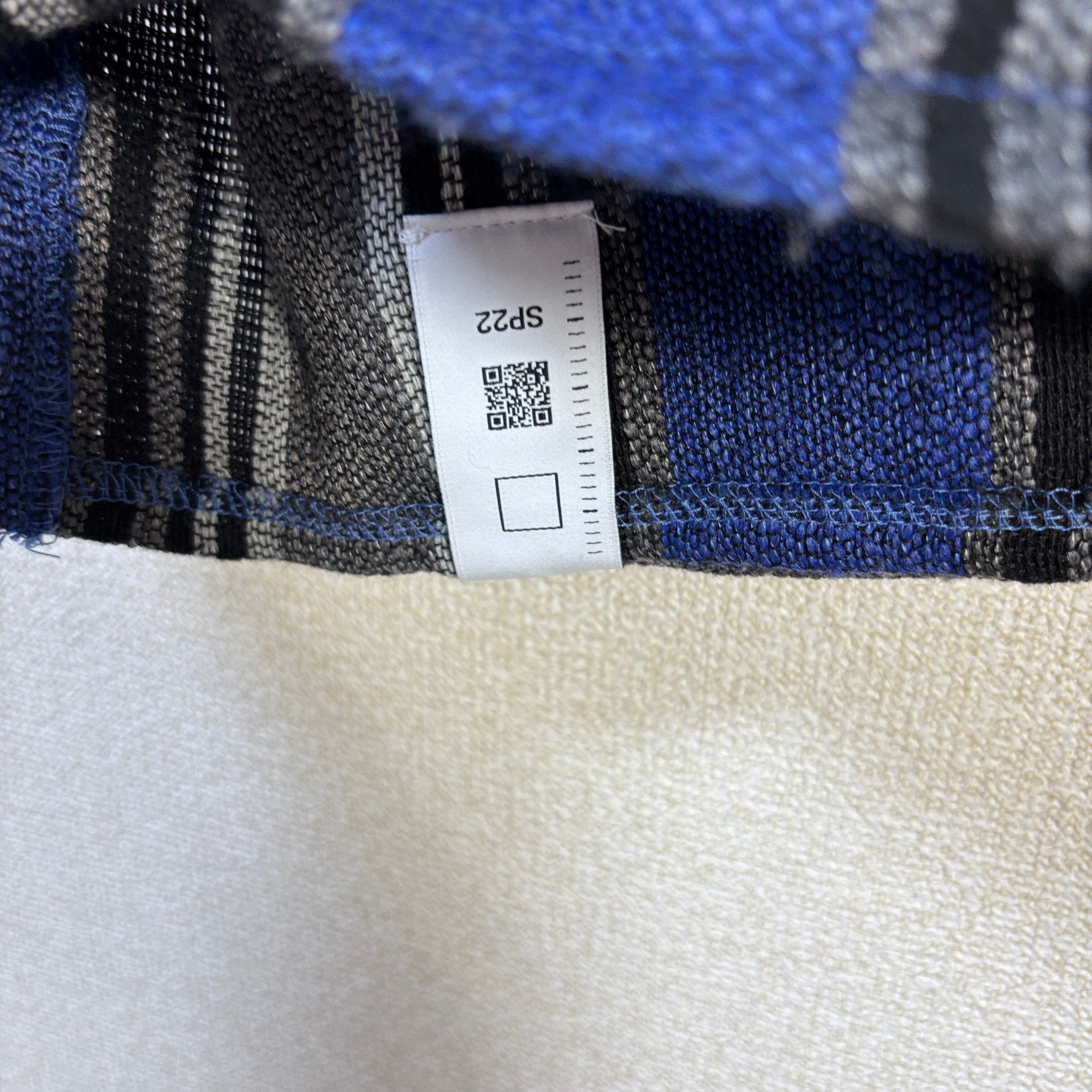 存在感のあるストライプ柄と、ブルー×グレーを基調とした配色が印象的な一着です。
