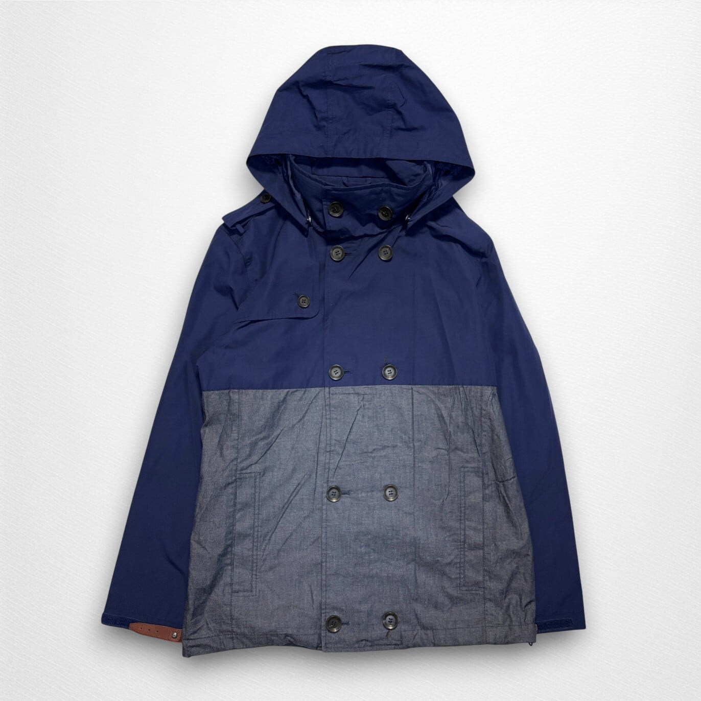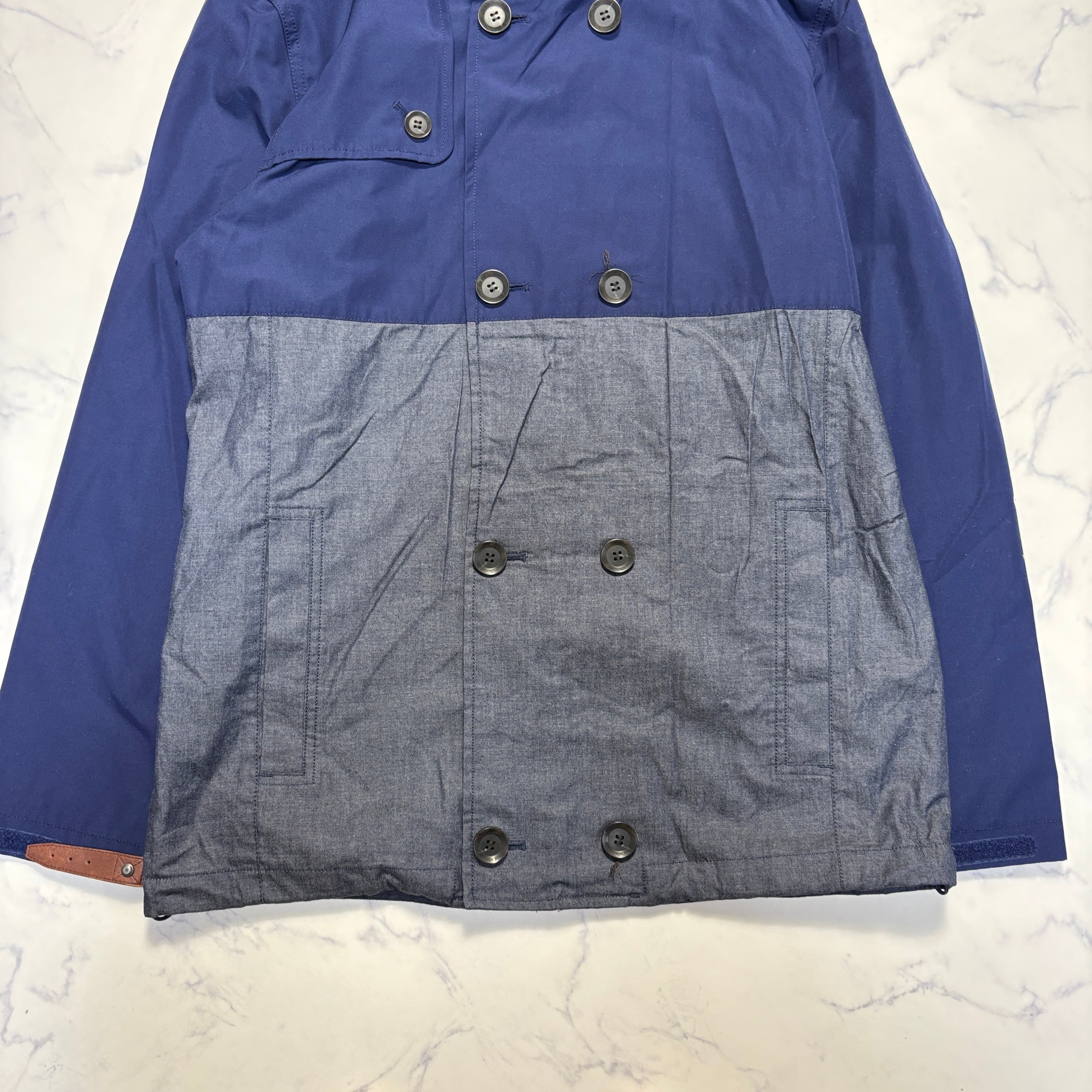 ネイビーカラーをベースに、異素材切替を取り入れたデザインが特徴で、アウトドアブランドらしい機能性と街着としての落ち着きを両立しています。