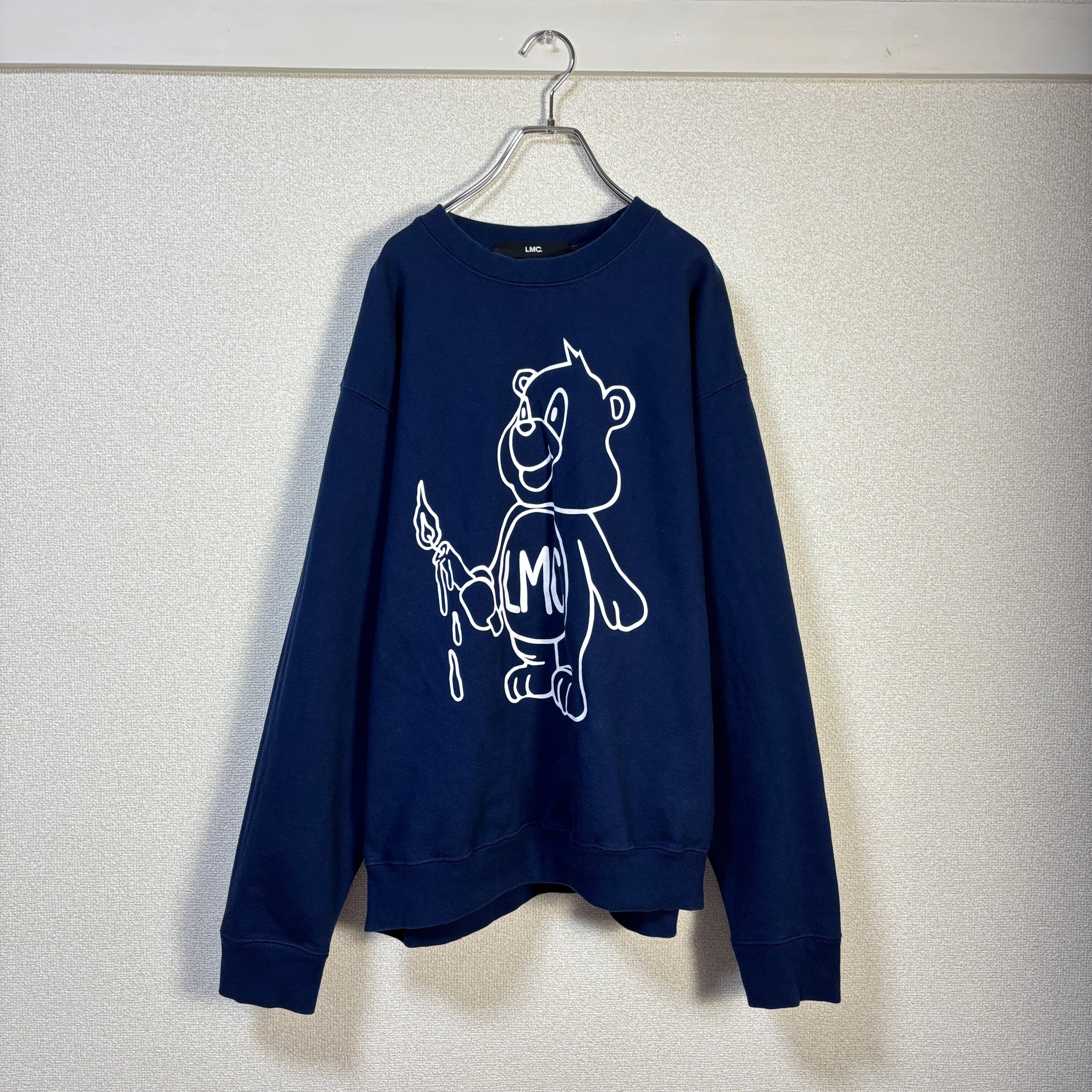 【LMC】 Lost Management Cities ベアプリント スウェット L ネイビー 韓国ブランド 韓国 古着