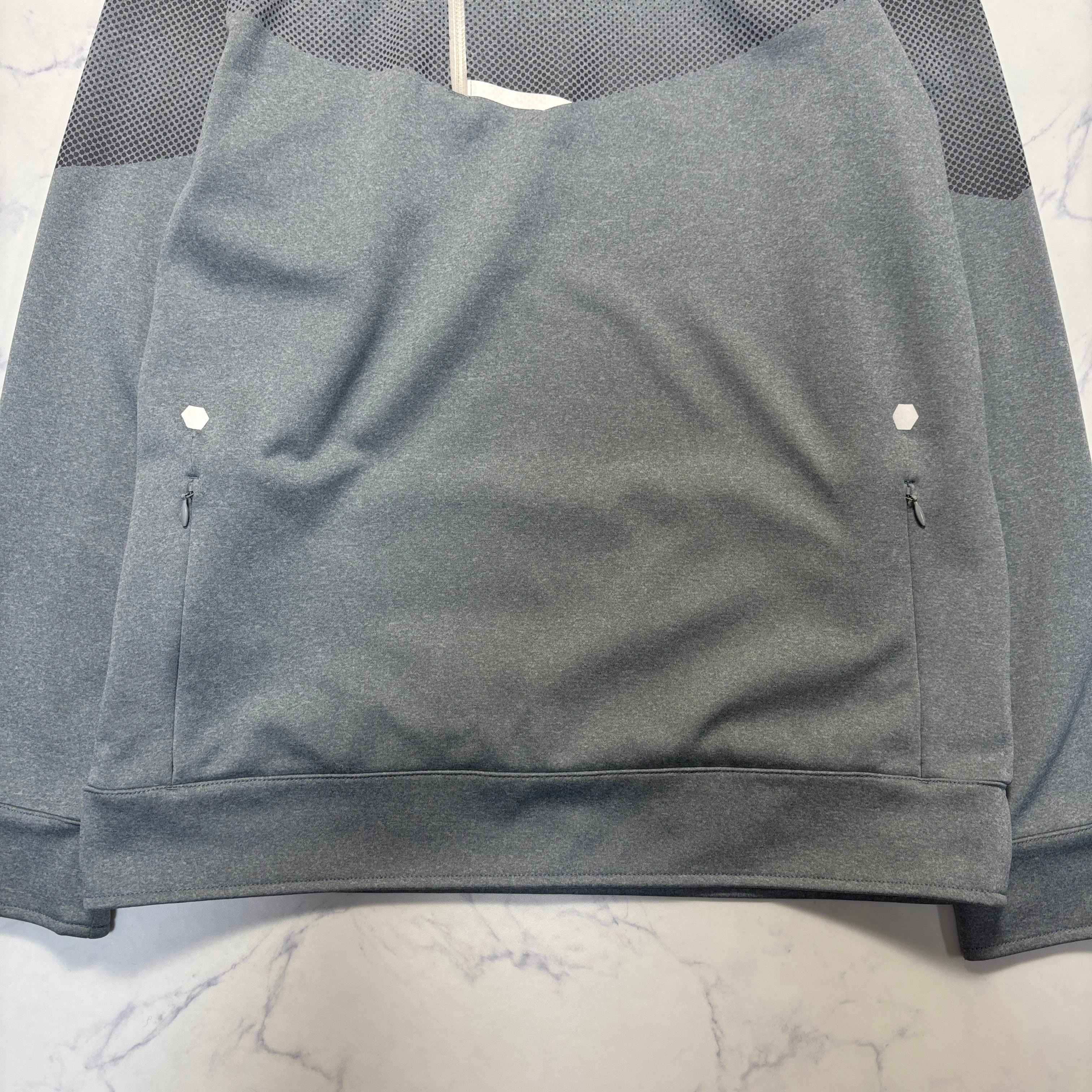 ハーフジップ仕様でスポーティーさと機能性を兼ね備え、タウンユースにもアウトドアにも馴染む万能フーディーです。