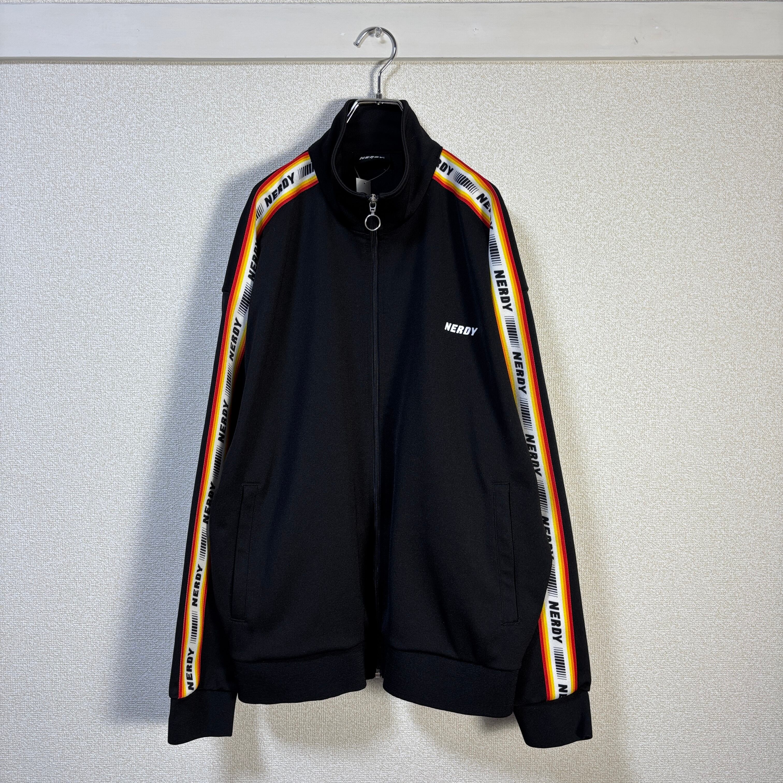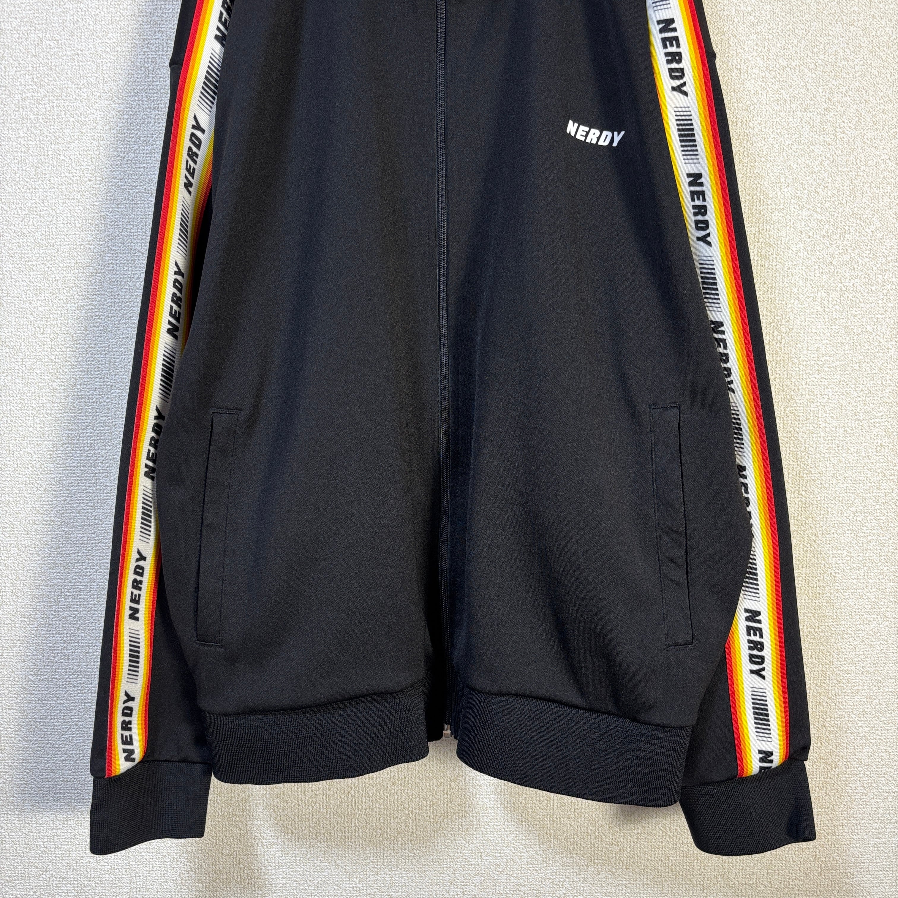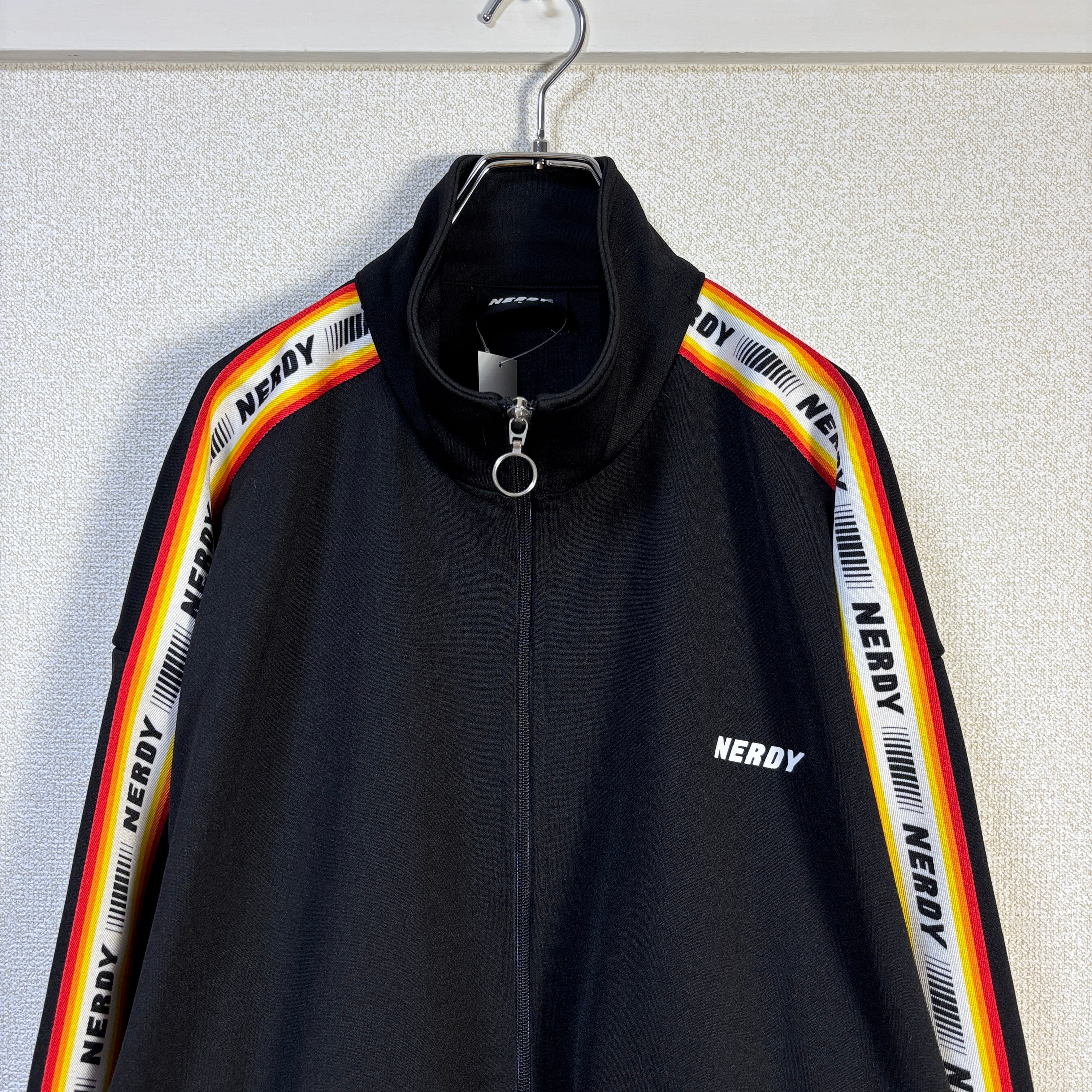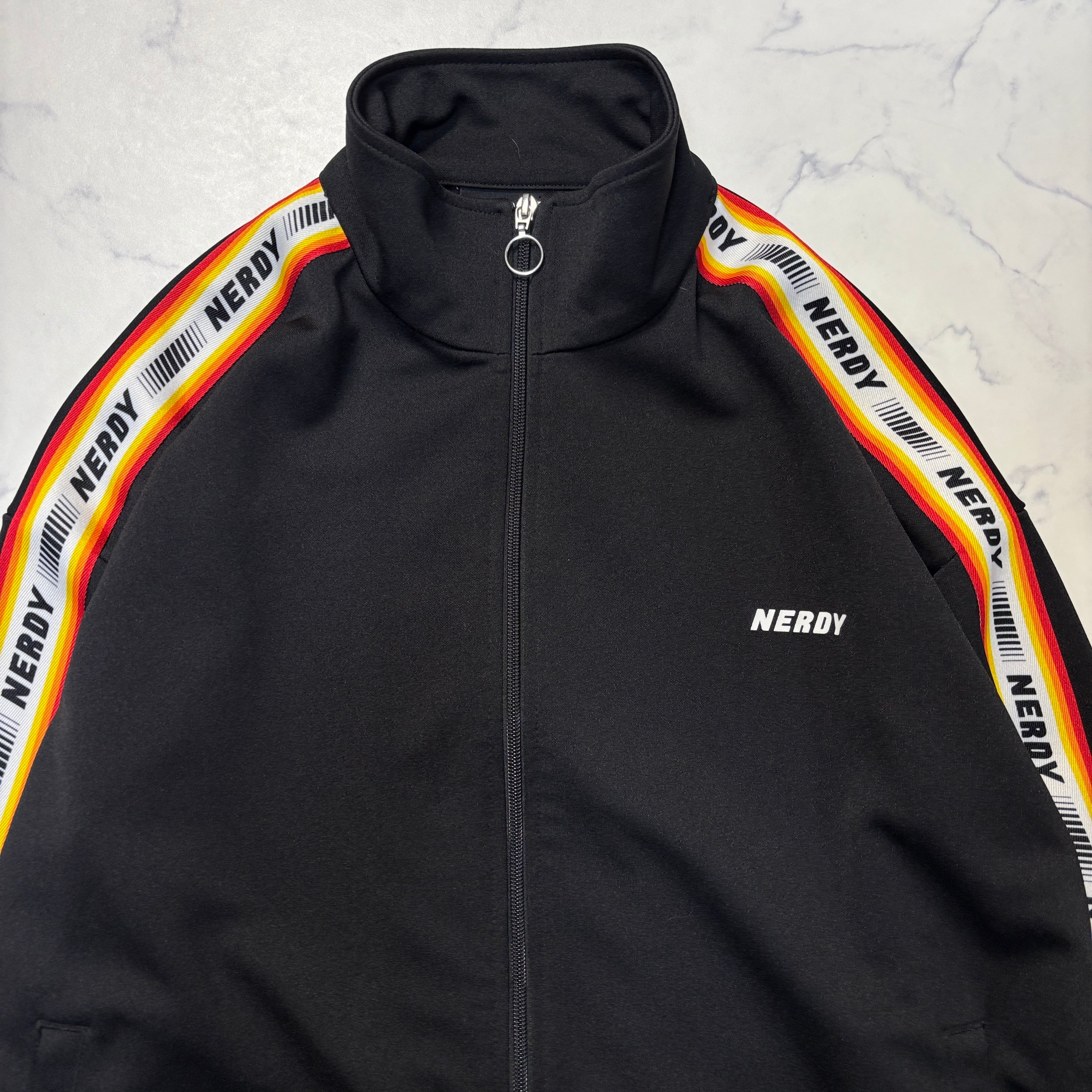 韓国ストリートブランド「ノルディー(NERDY)」のアイコン的デザイン、ロゴテープラインが映えるトラックジャケット。