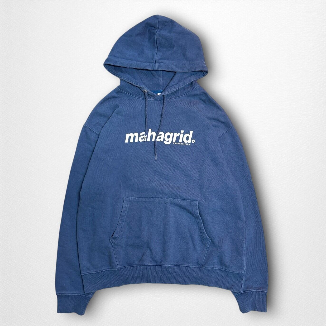 【MAHAGRID】マハグリッド BASIC LOGO HOODIE ネイビー ロゴパーカー M 韓国ブランド 古着