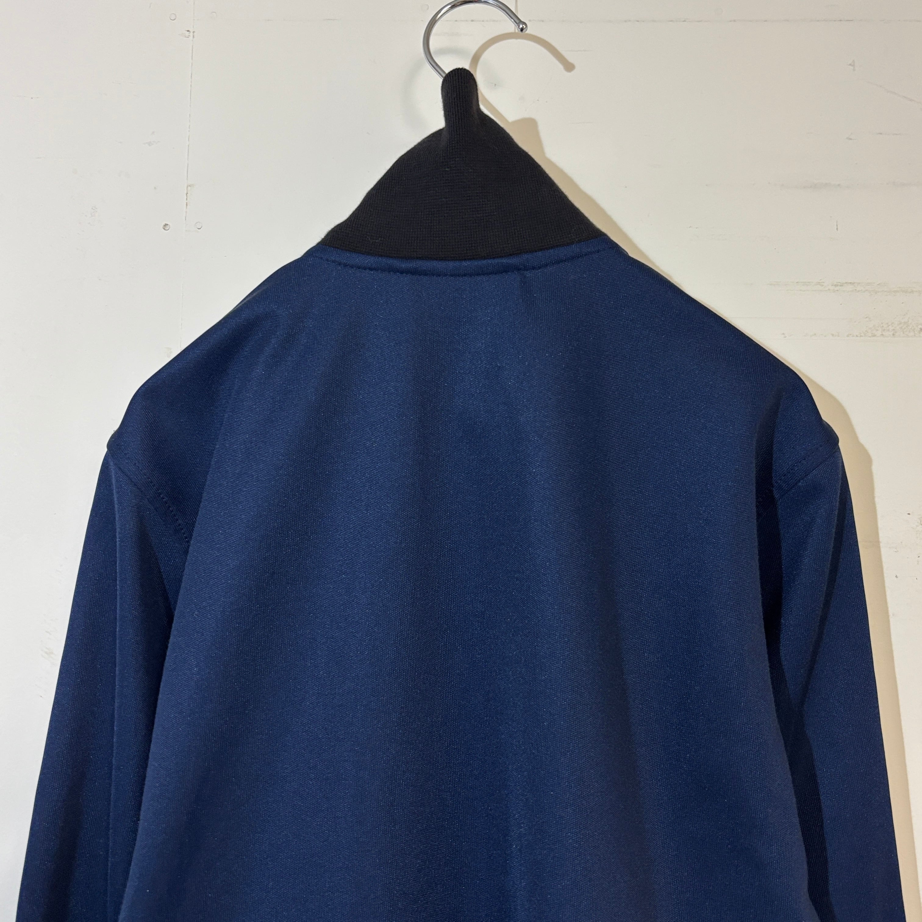 深みのあるネイビーボディに、鮮やかなブルーのファスナーと袖ラインが映える配色で、スポーティーながら洗練された印象にまとまっています。