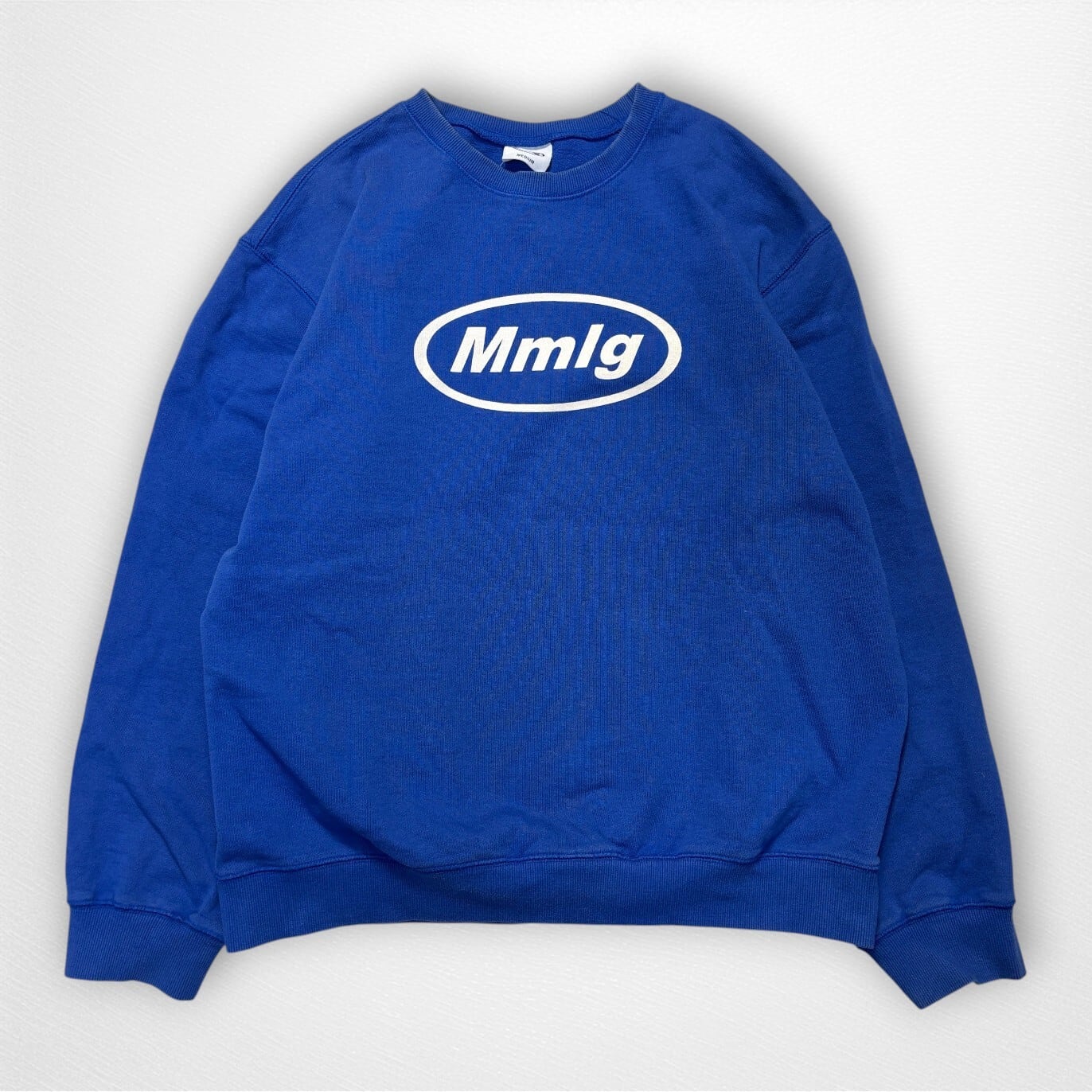 鮮やかなブルーカラーが目を引く、Mmlgのロゴスウェットです。