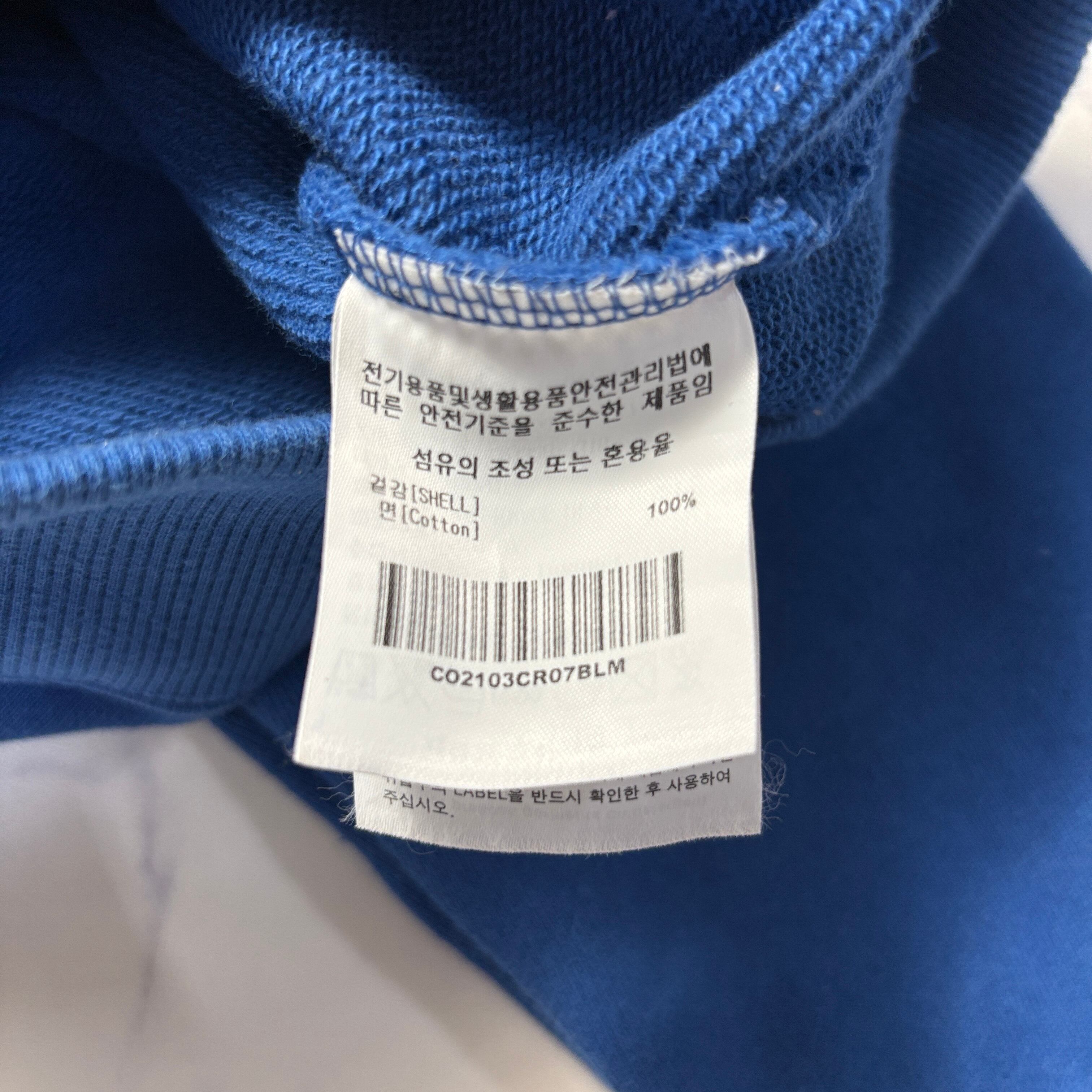 特徴:胸ワンポイント刺繍ロゴ、裏毛スウェット、韓国語品質表示タグあり