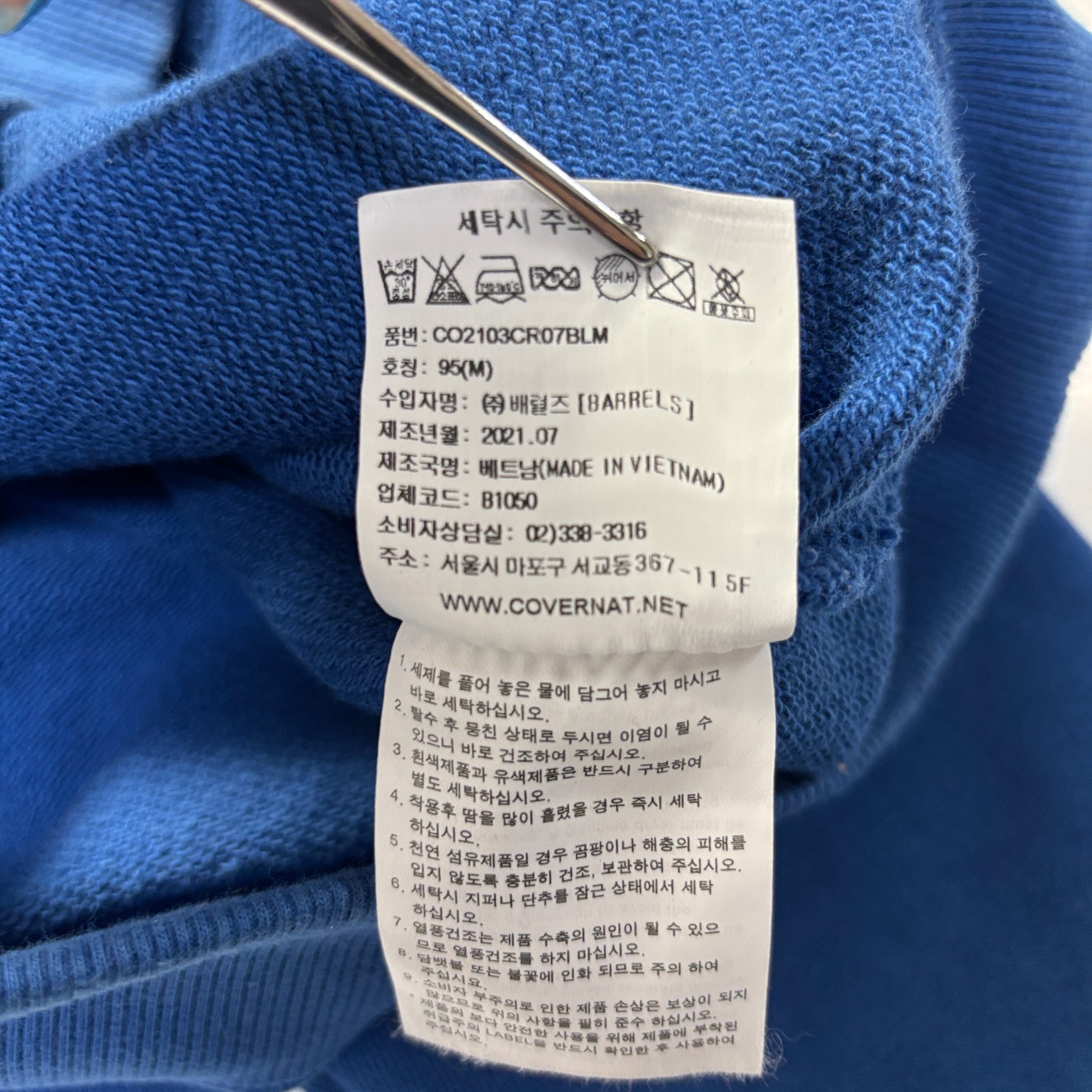 【COVERNAT】カバーナット ブルー ワンポイントロゴ スウェット トレーナー M 韓国 古着
