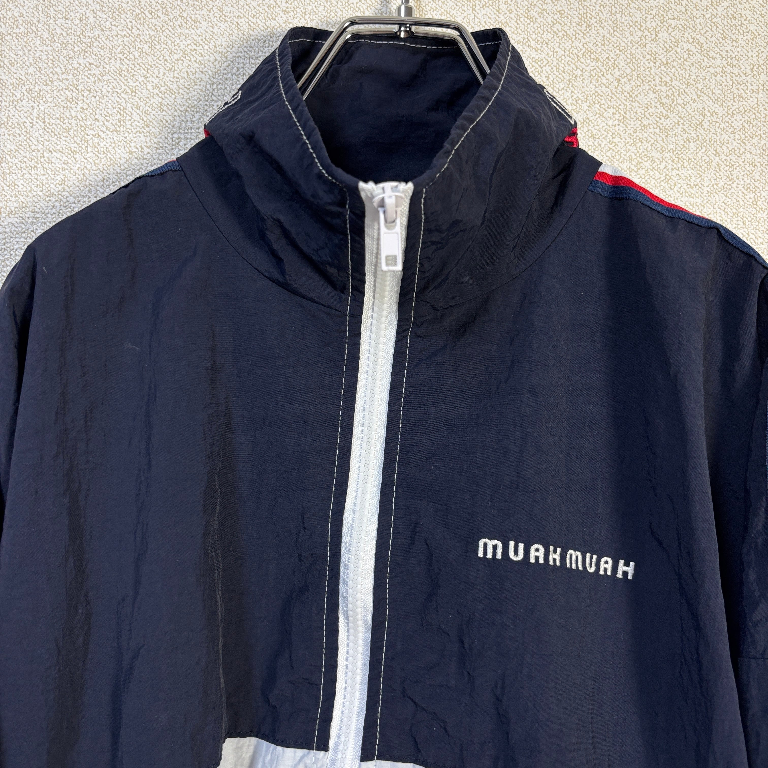 【MUAH MUAH】ムーアムーア ナイロンジャケット トラックジャケット 韓国ブランド ネイビー×ホワイト クロップド丈 古着