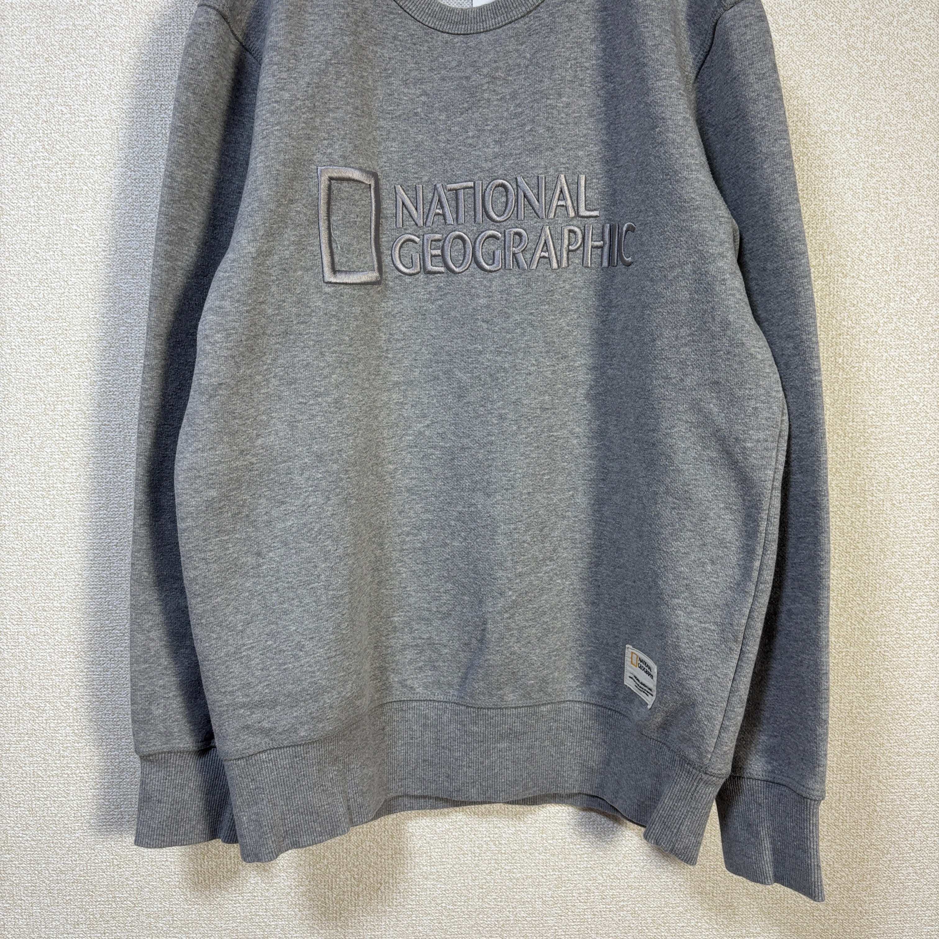 【NATIONAL GEOGRAPHIC】ナショナルジオグラフィック 刺繍ロゴ スウェット トレーナー 95 M グレー 韓国 古着