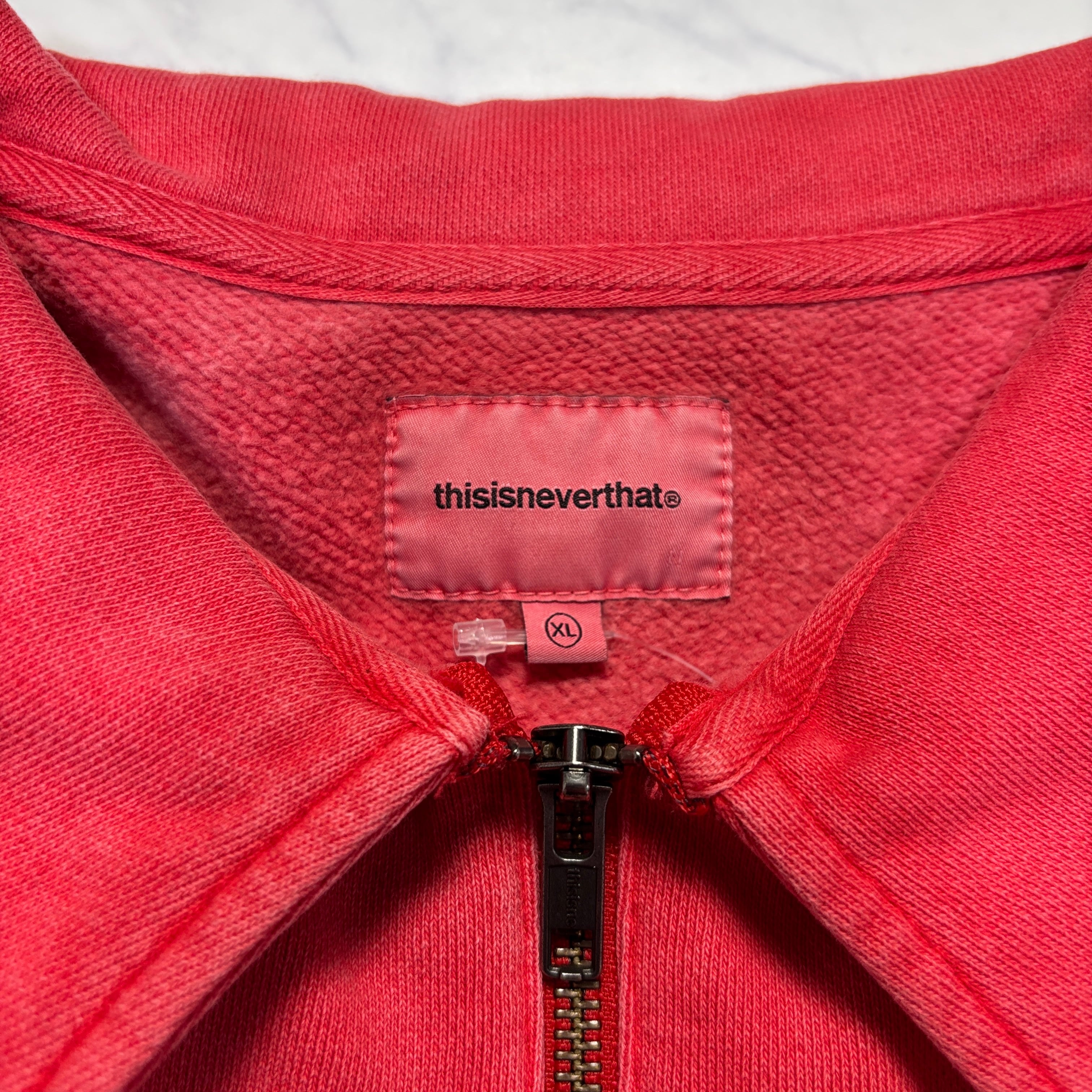 【thisisneverthat】ディスイズネバーザット ハーフジップ 襟付き スウェット XL レッド 韓国ブランド 古着