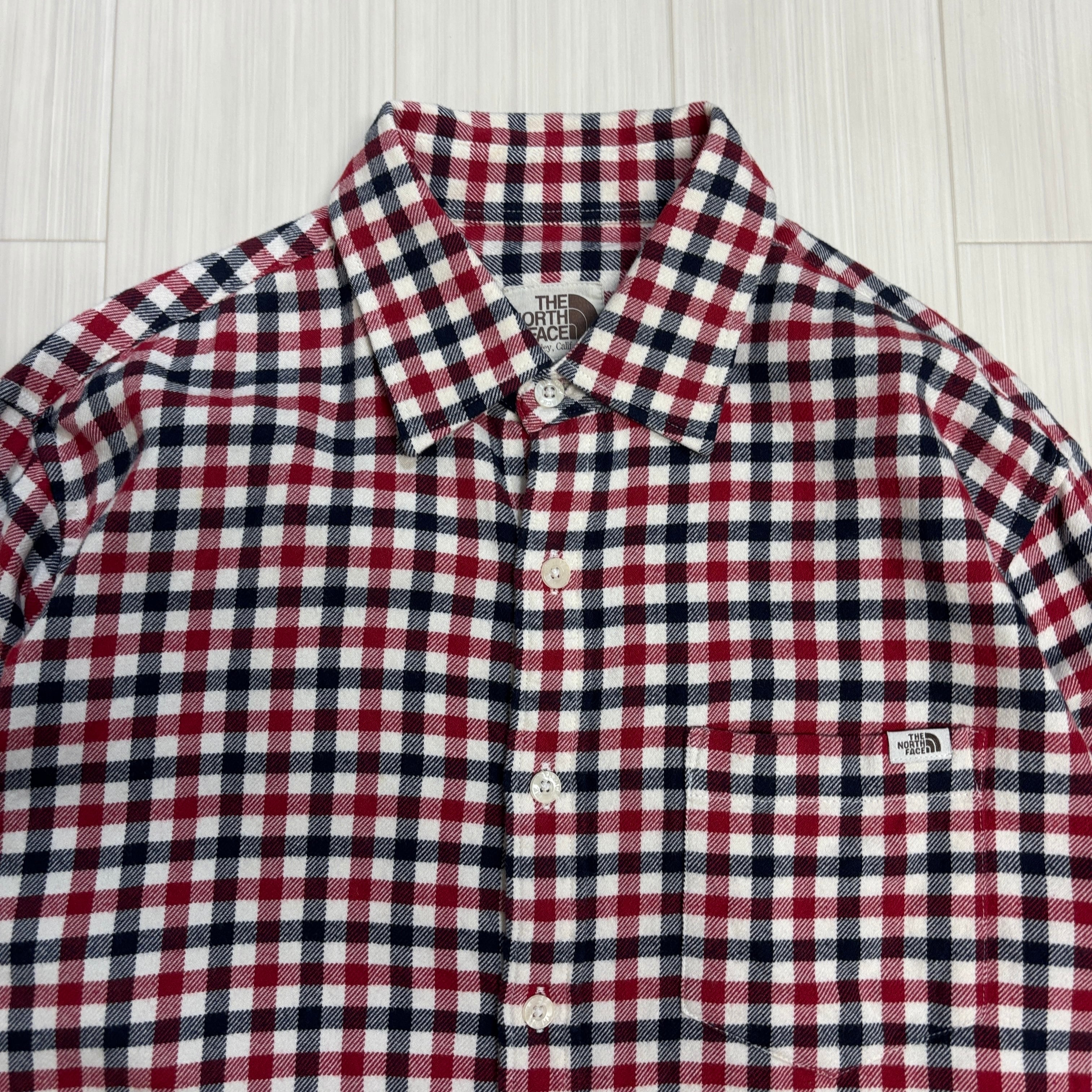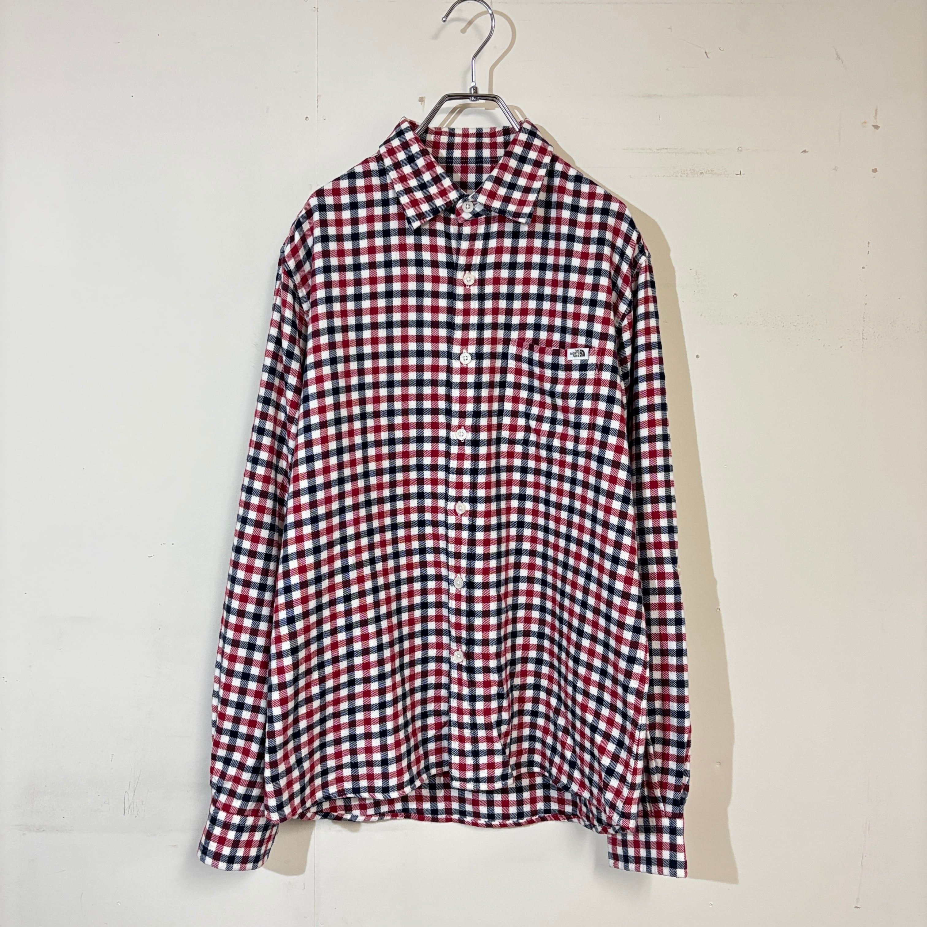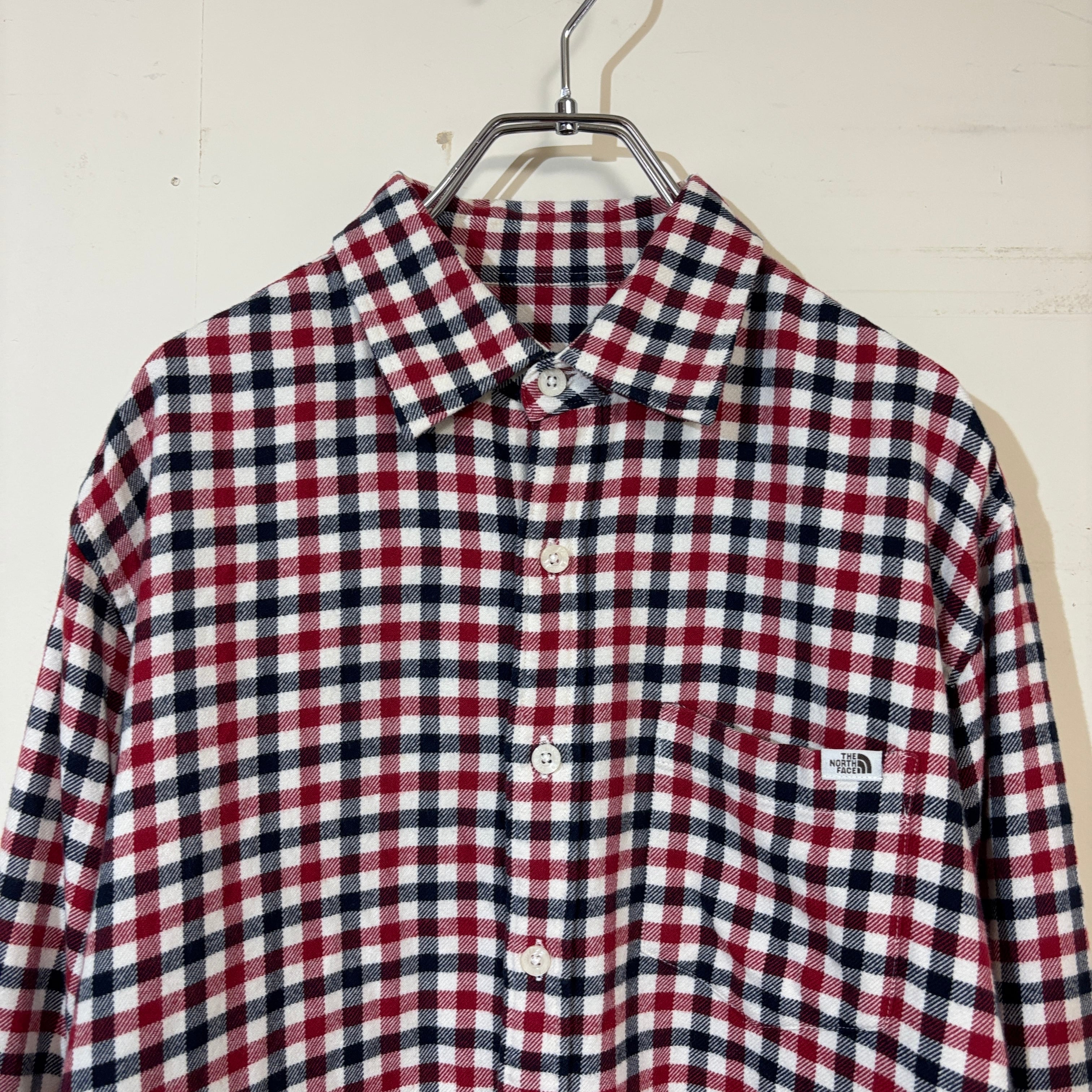 【THE NORTH FACE】ザノースフェイス チェック柄 長袖シャツ XL 105 レッド ネイビー 韓国 古着