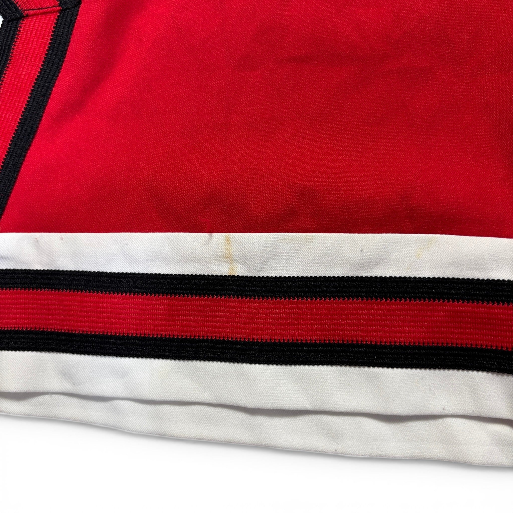 ウエスト白地部分に薄い黄ばみ、裾の白地部分に薄い汚れが見受けられます。