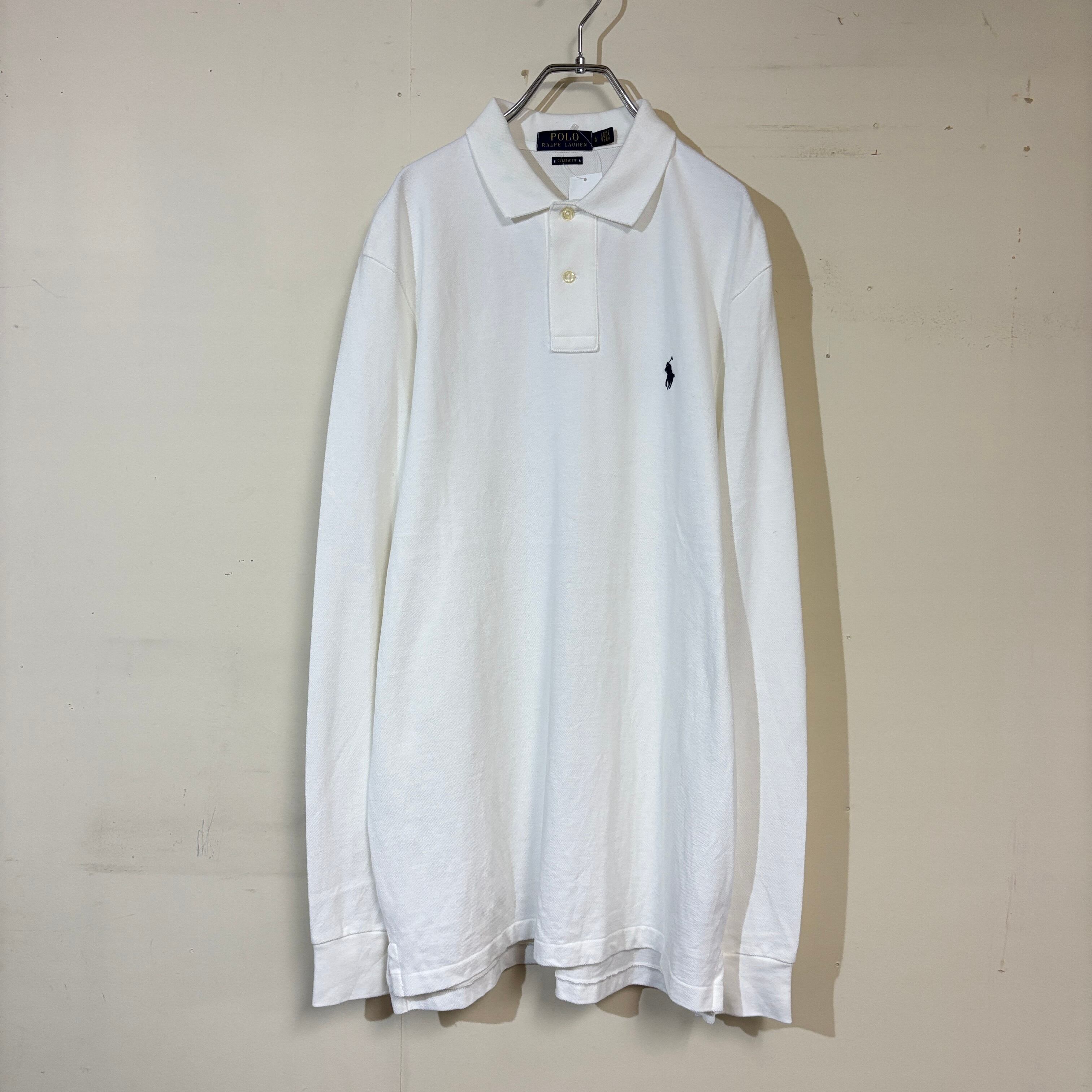 【POLO RALPH LAUREN】ポロラルフローレン ワンポイント刺繍 長袖ポロシャツ ホワイト LG