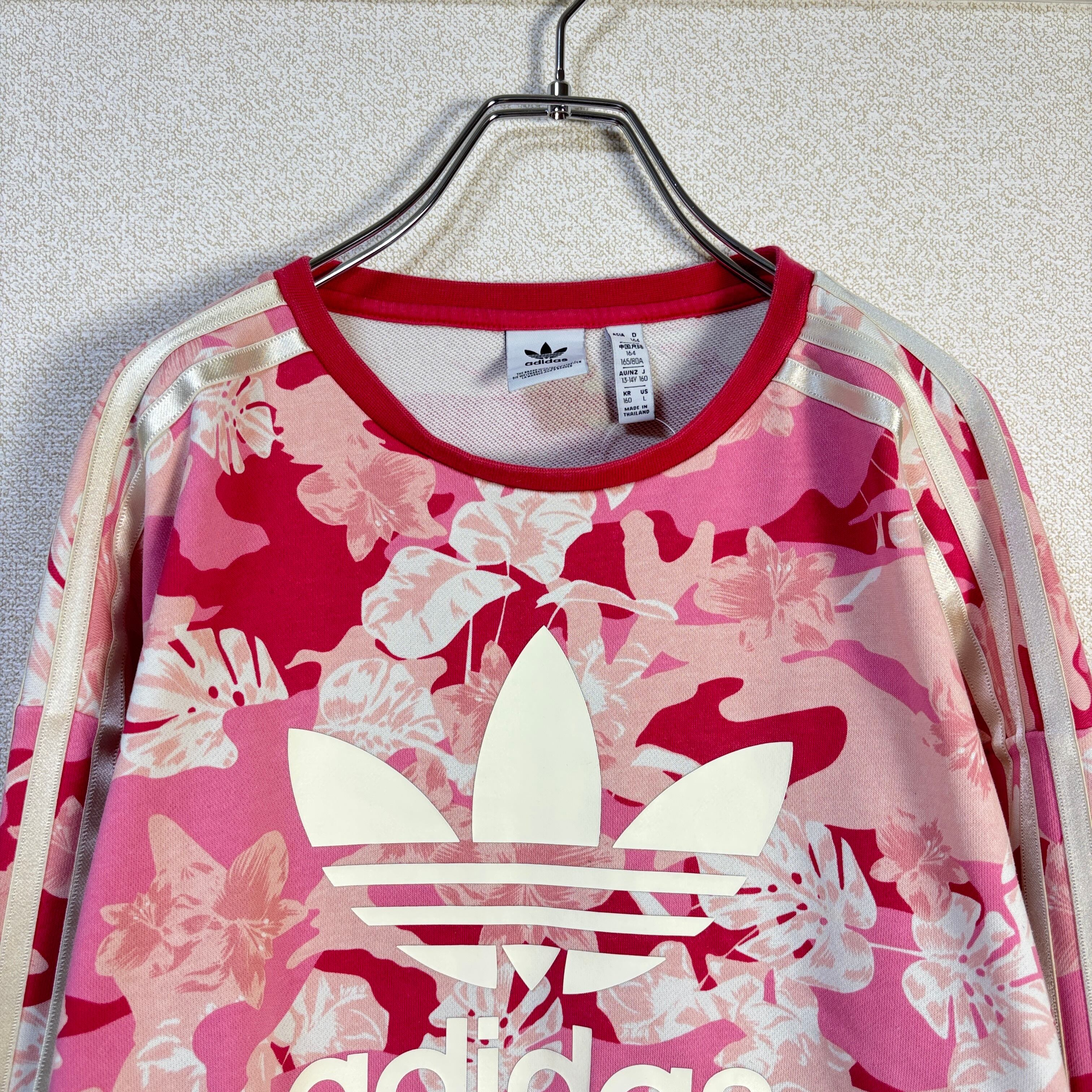 【adidas Originals】アディダスオリジナルストレフォイルロゴ フローラルカモ柄 スウェット トレーナー 160(レディースS〜M相当) ピンク系 韓国 古着
