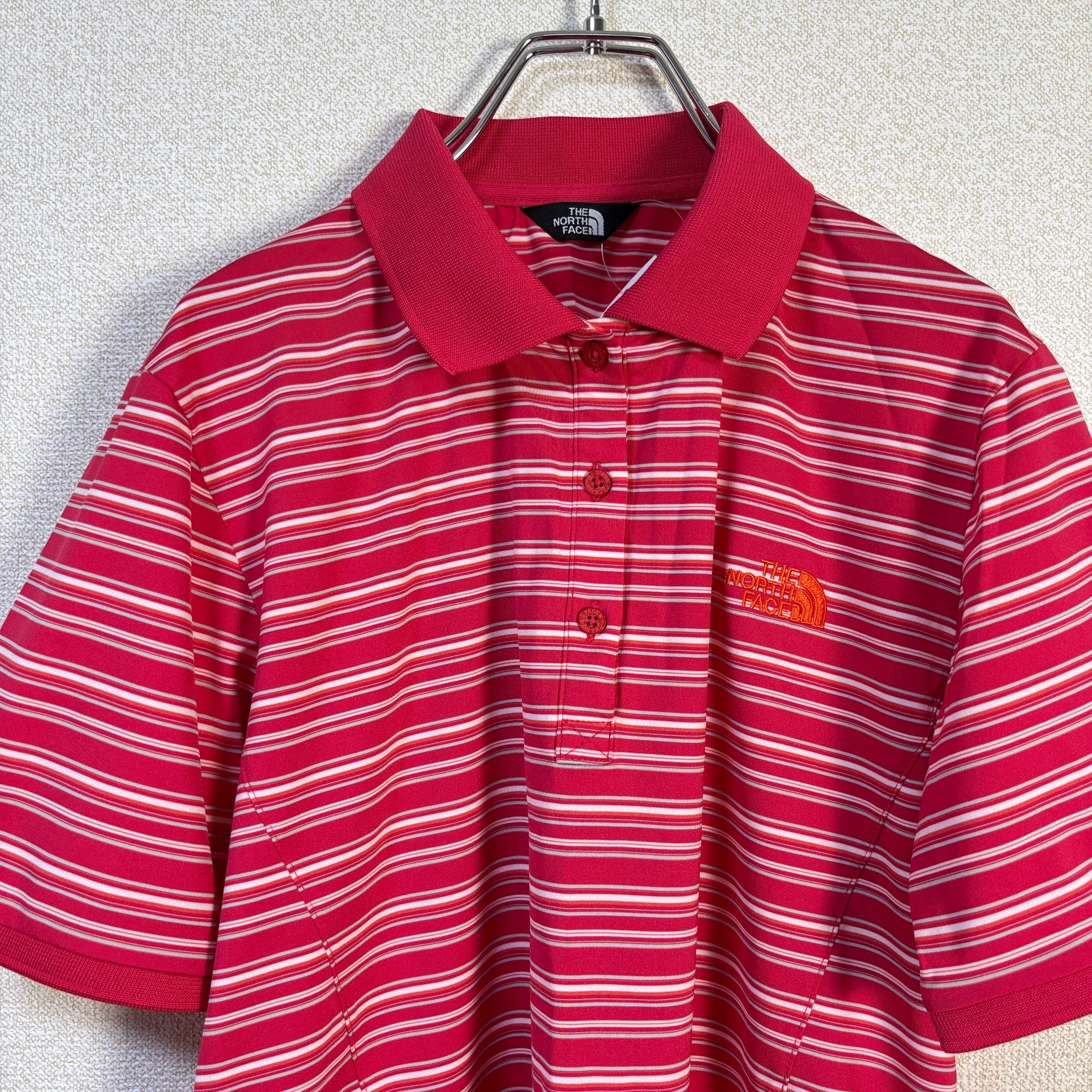 【THE NORTH FACE】ザノースフェイス ボーダー半袖ポロシャツ 100 XXL ピンク系 韓国古着